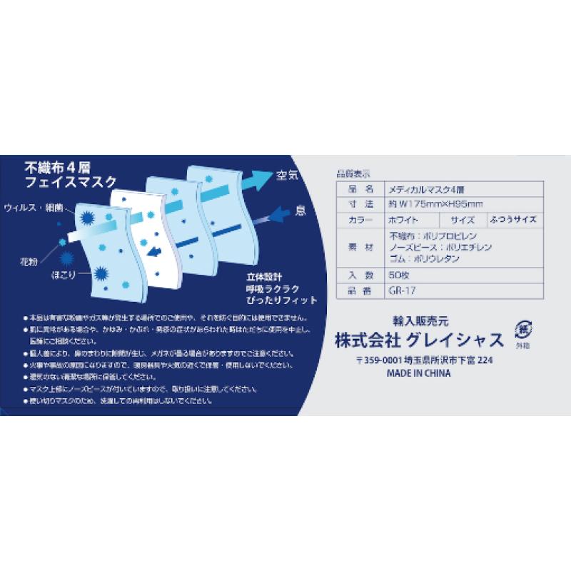 Premium 4層 使い捨てマスク50枚入り (個包装タイプ)