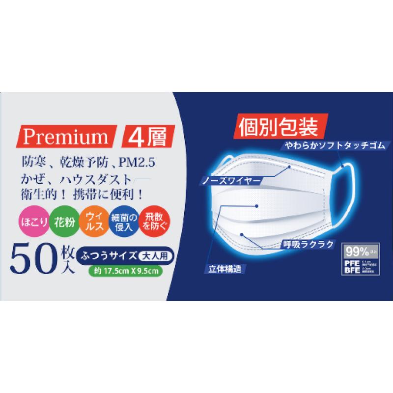 Premium 4層 使い捨てマスク50枚入り (個包装タイプ)